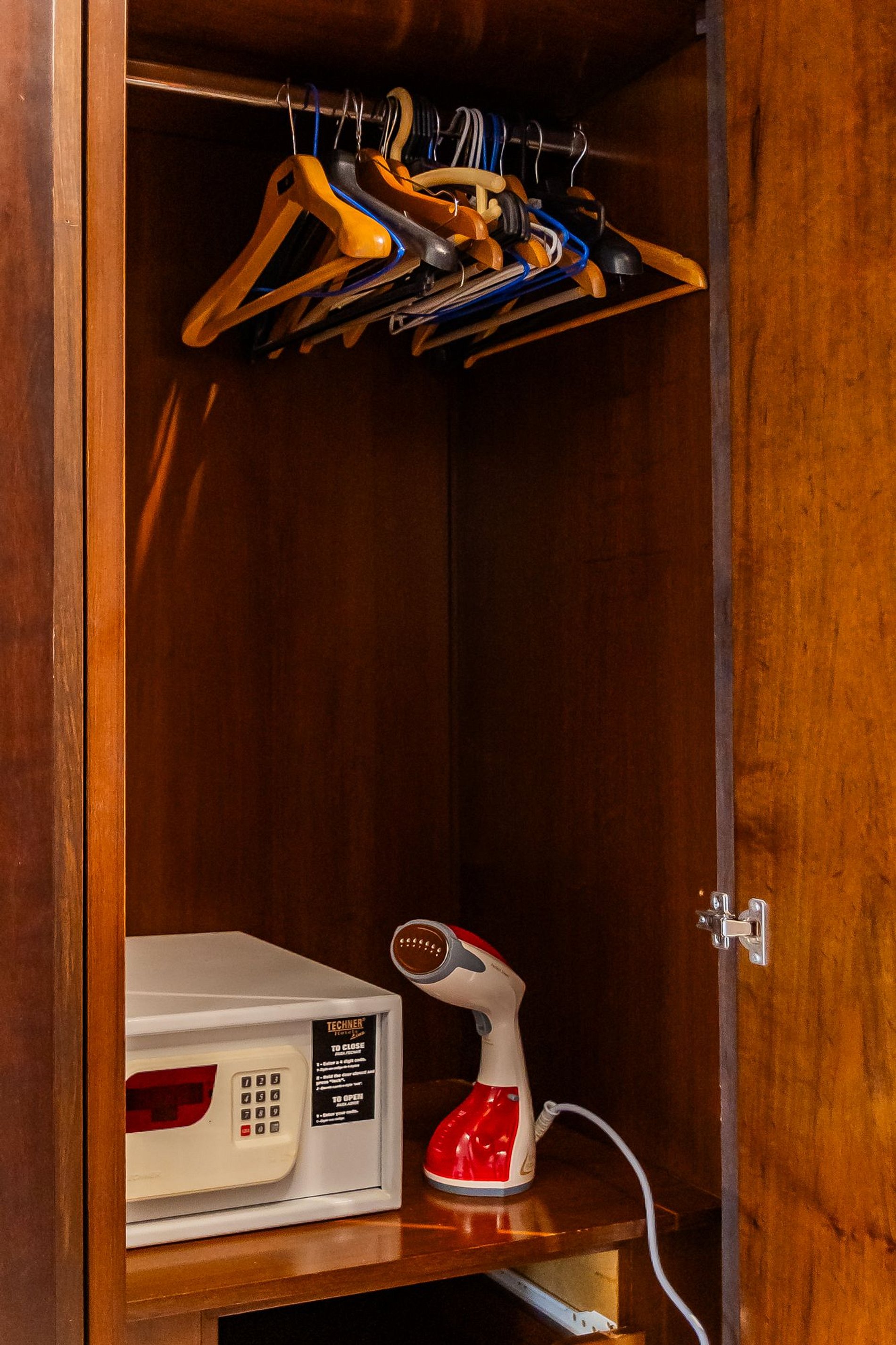 • Conforto: cama queen, ar-condicionado, frigobar, secador de cabelo e vaporizador