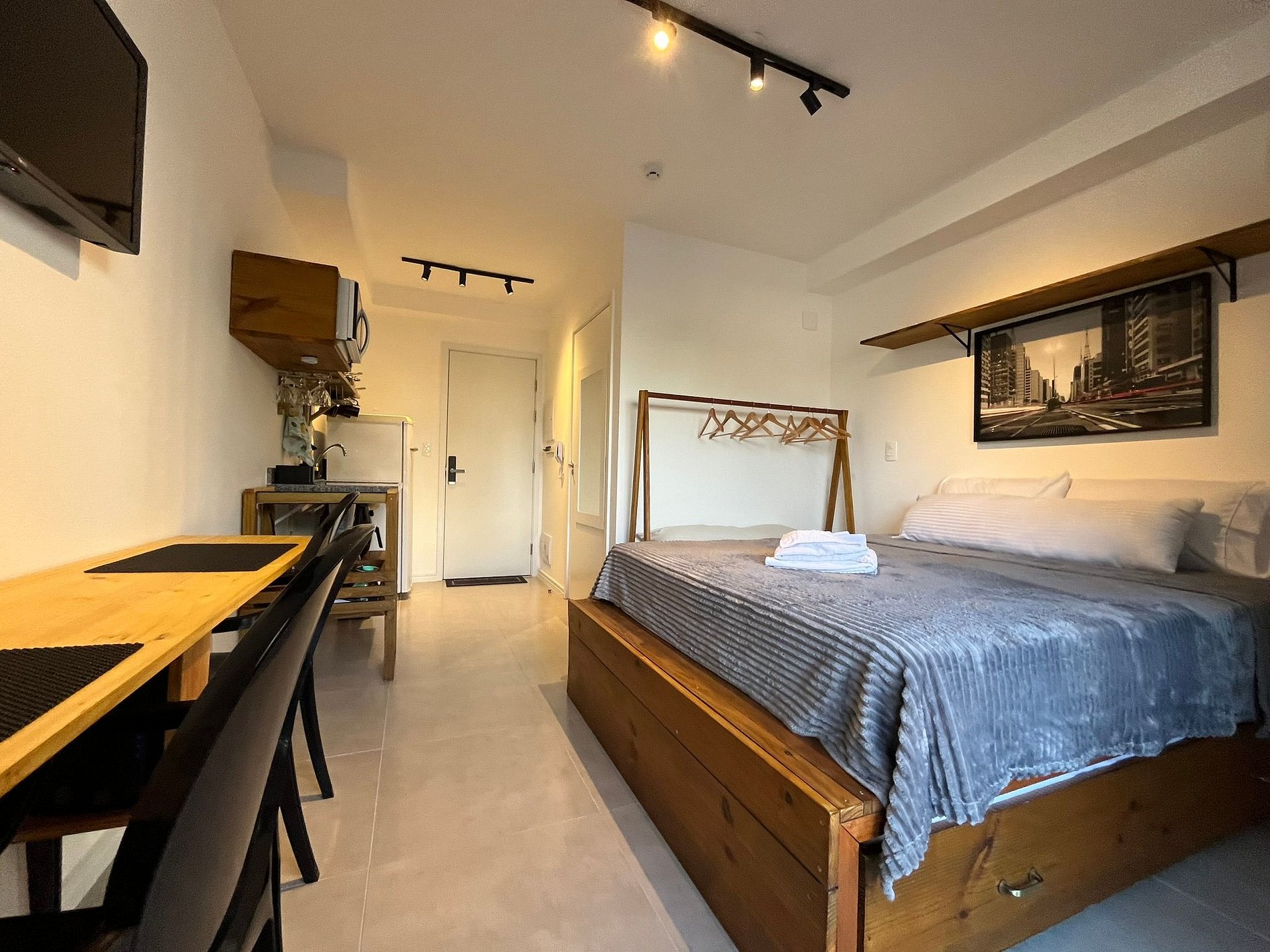 Curta um Novíssimo e moderno Studio com varanda e ar condicionado para o seu conforto.