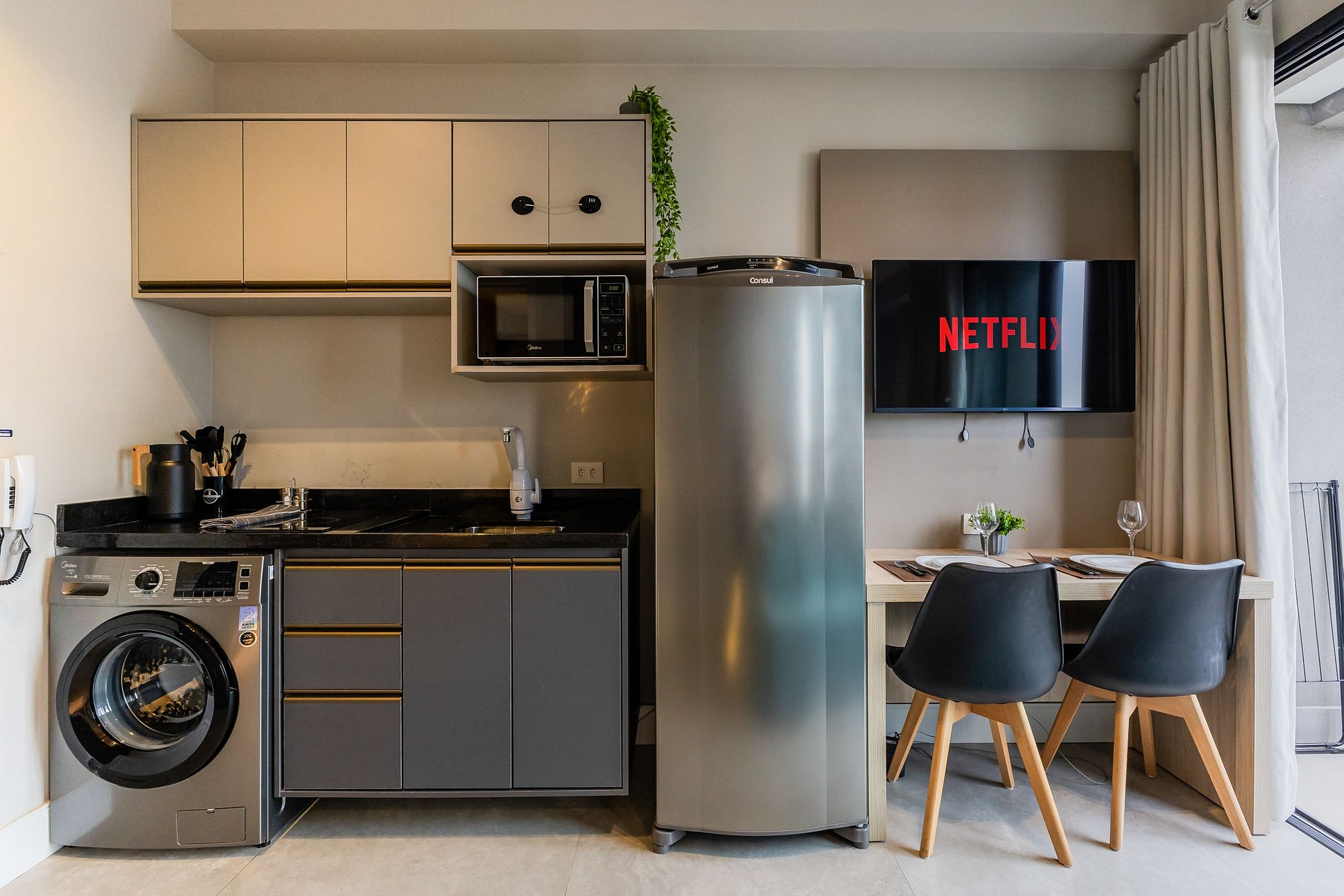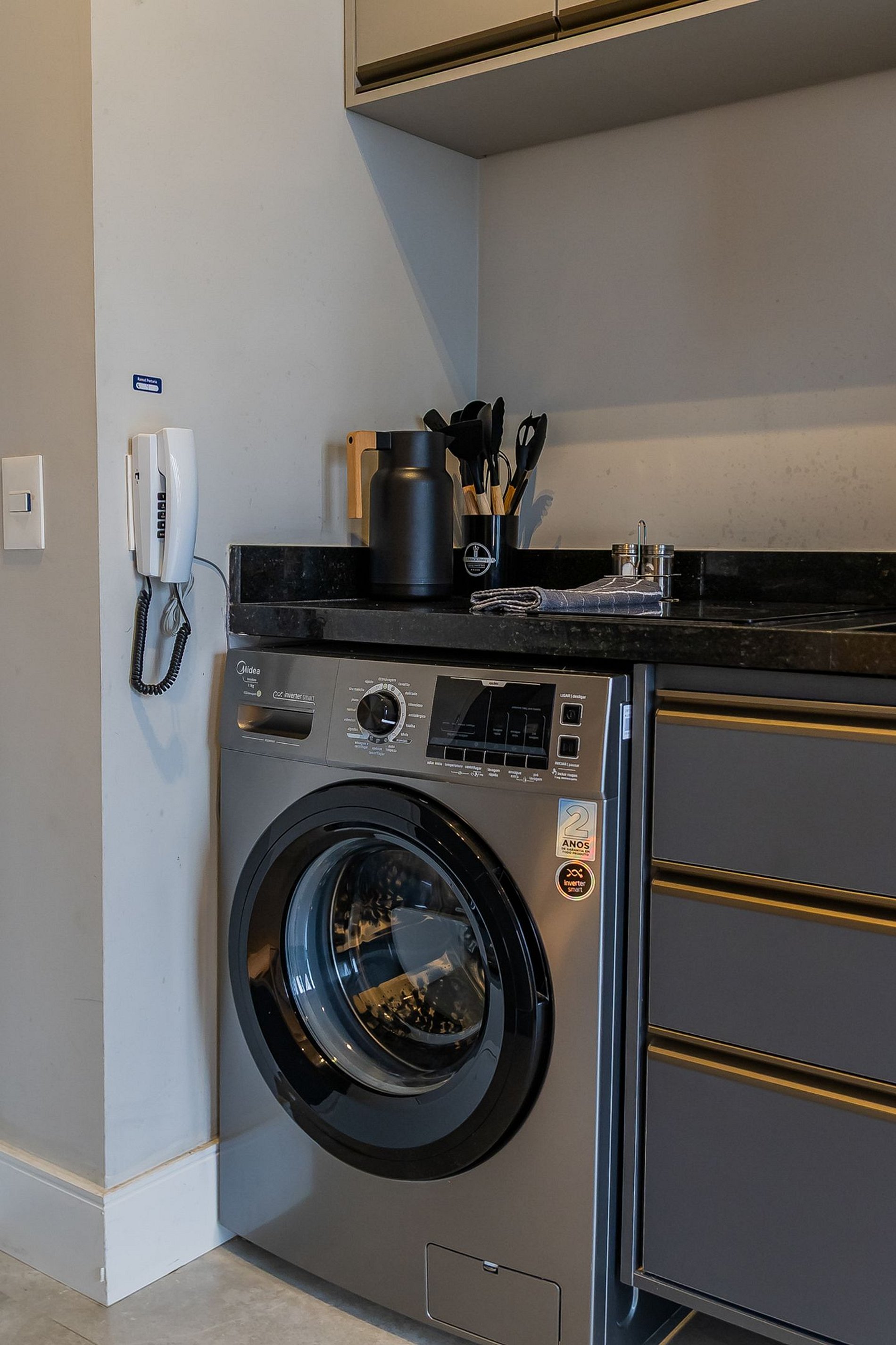 - Suíte com máquina de lavar, secador de cabelo e vaporizador