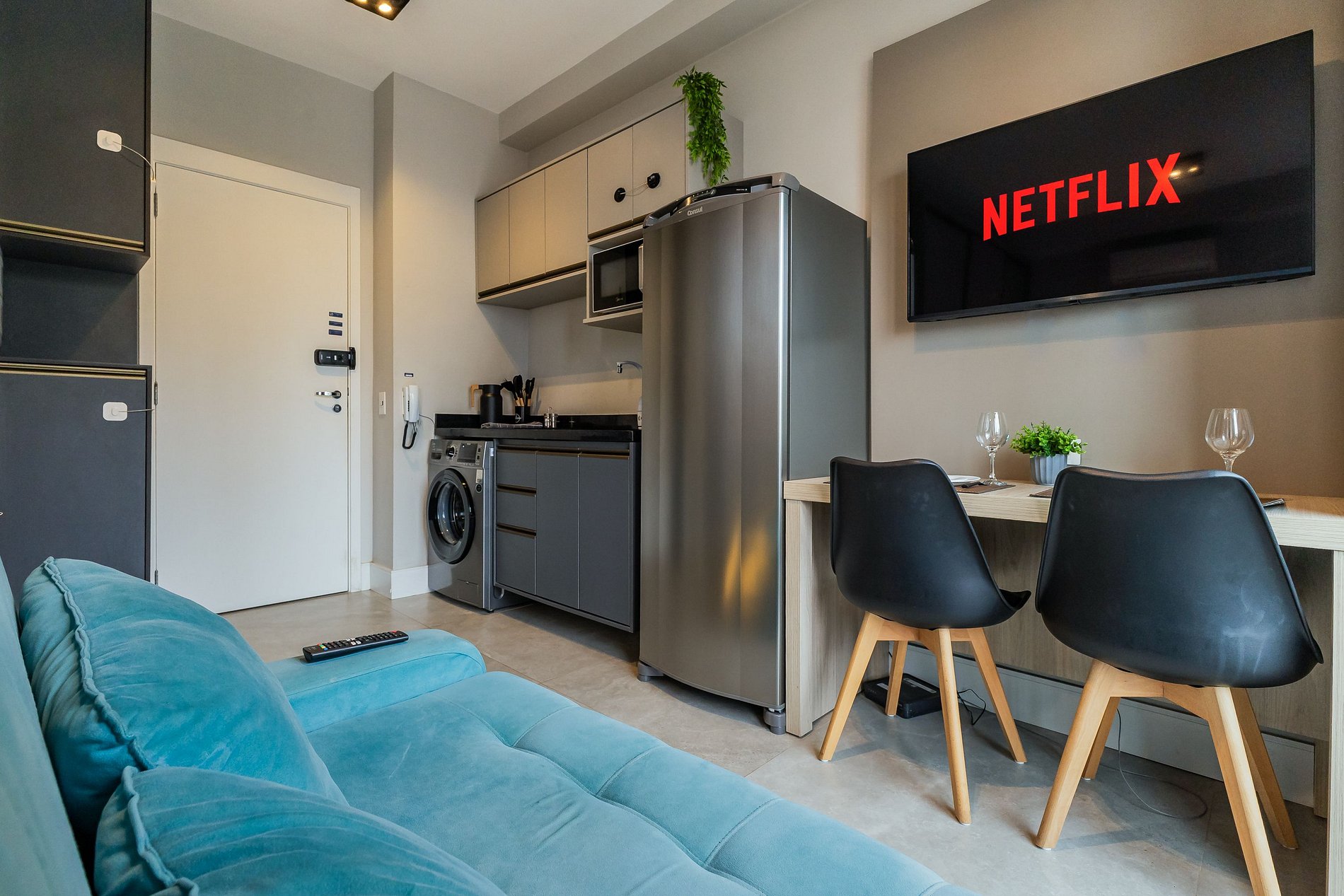 - Wi-Fi fibra 300 Mb, Smart TV (Netflix & YouTube) e ambiente home office
