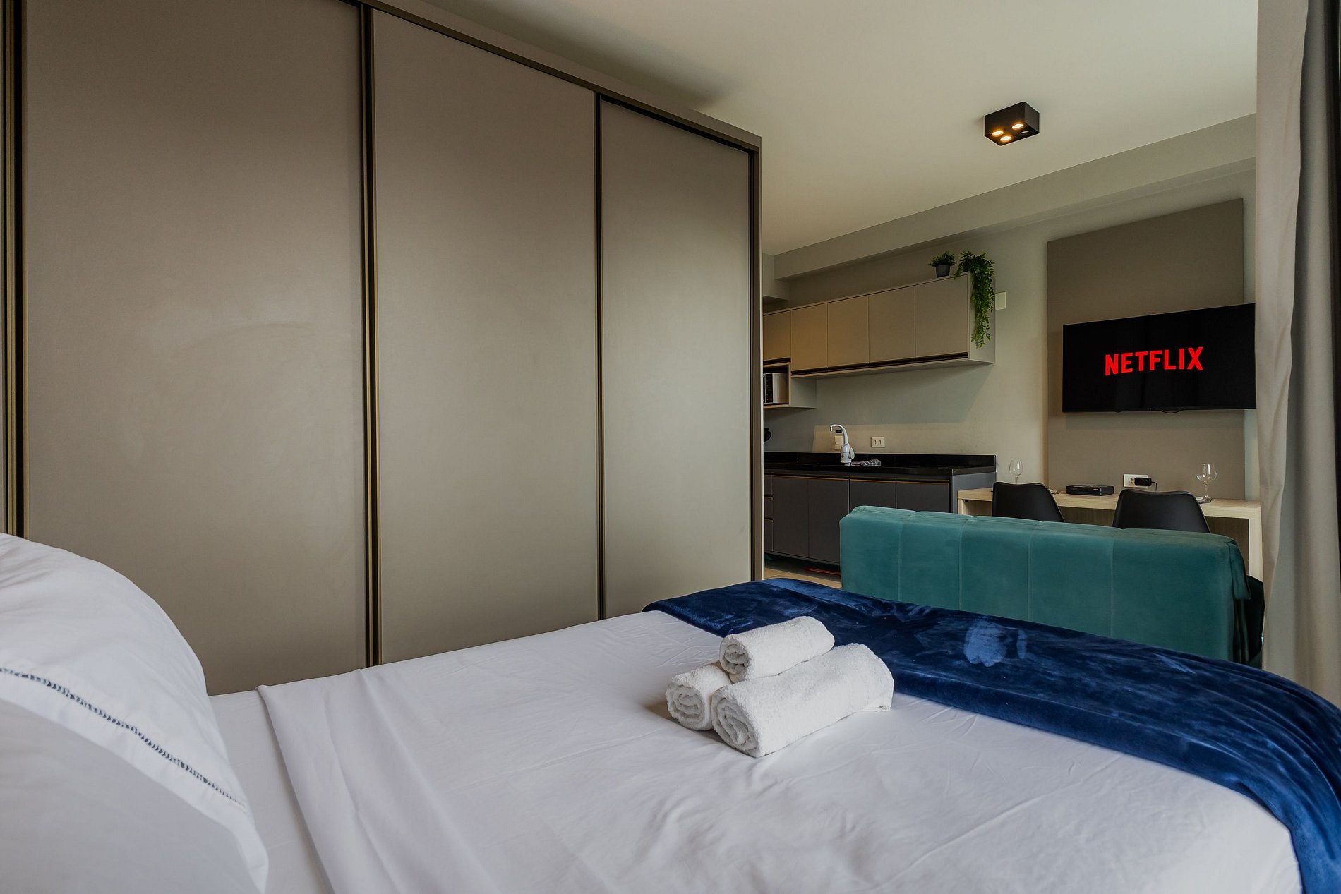 - Wi-Fi fibra 300 Mb, Smart TV (Netflix & YouTube) e ambiente home office