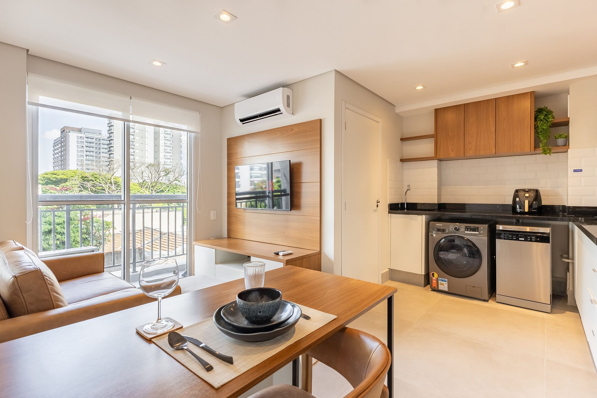 • Máquina lava e seca integrada ao ambiente da cozinha