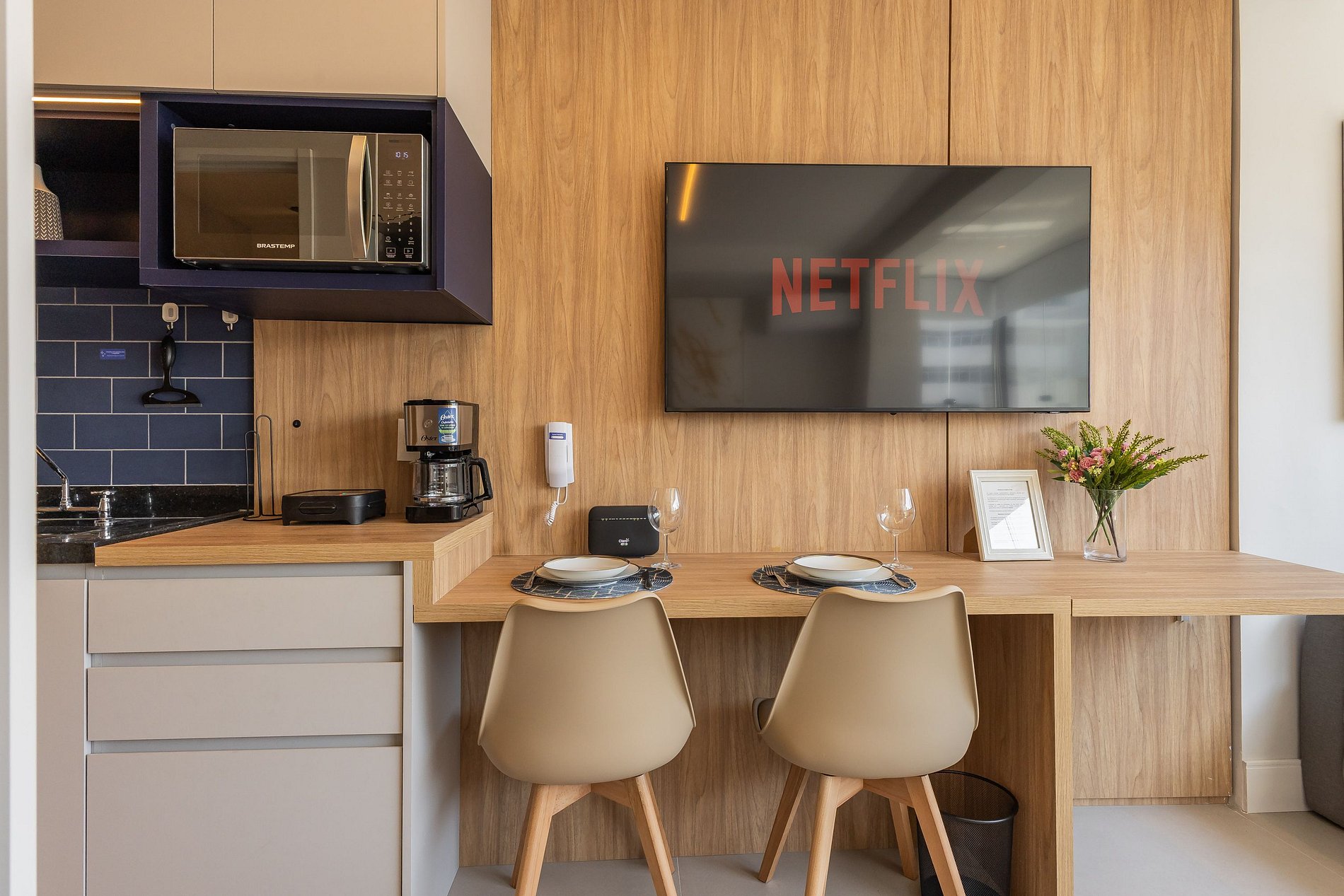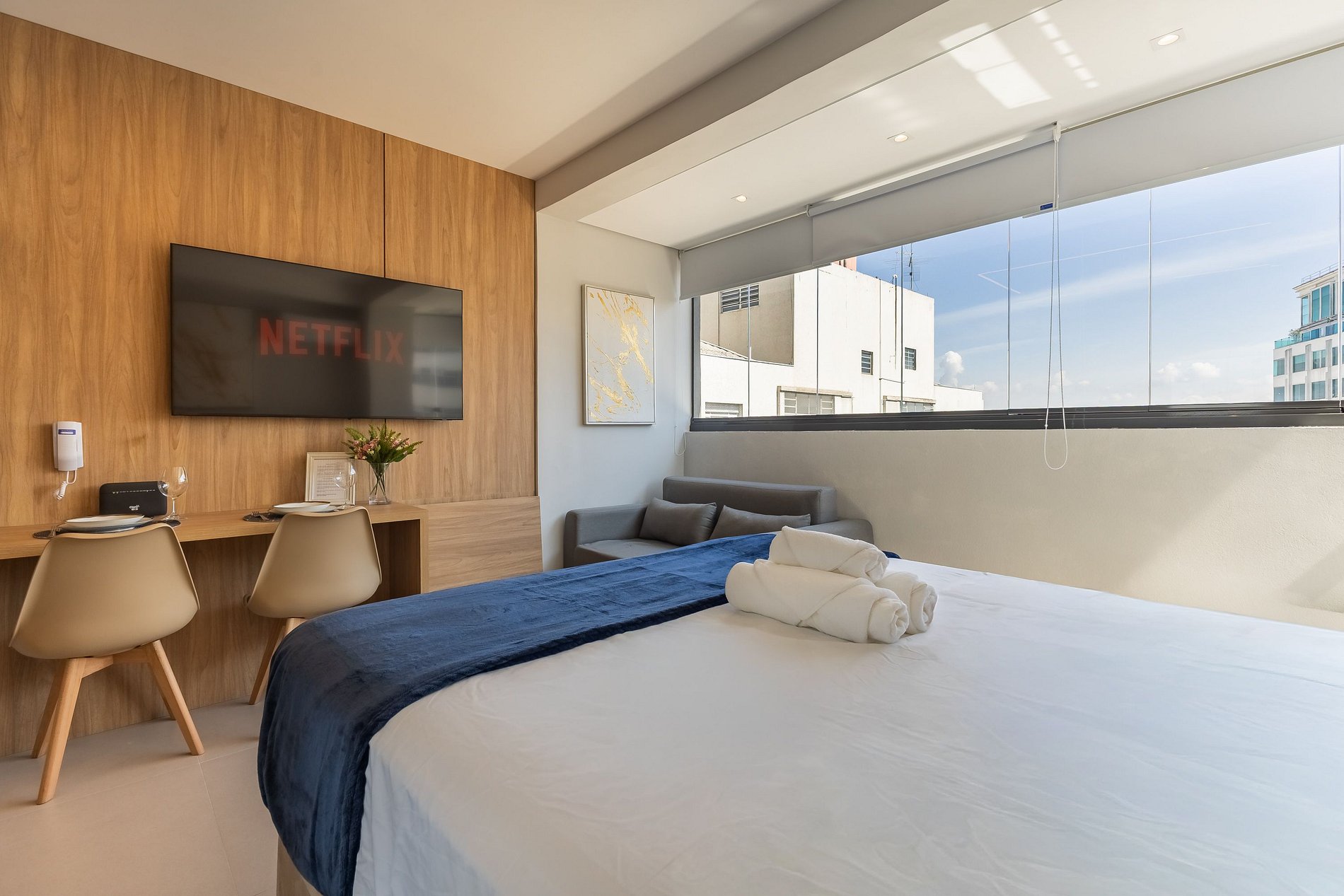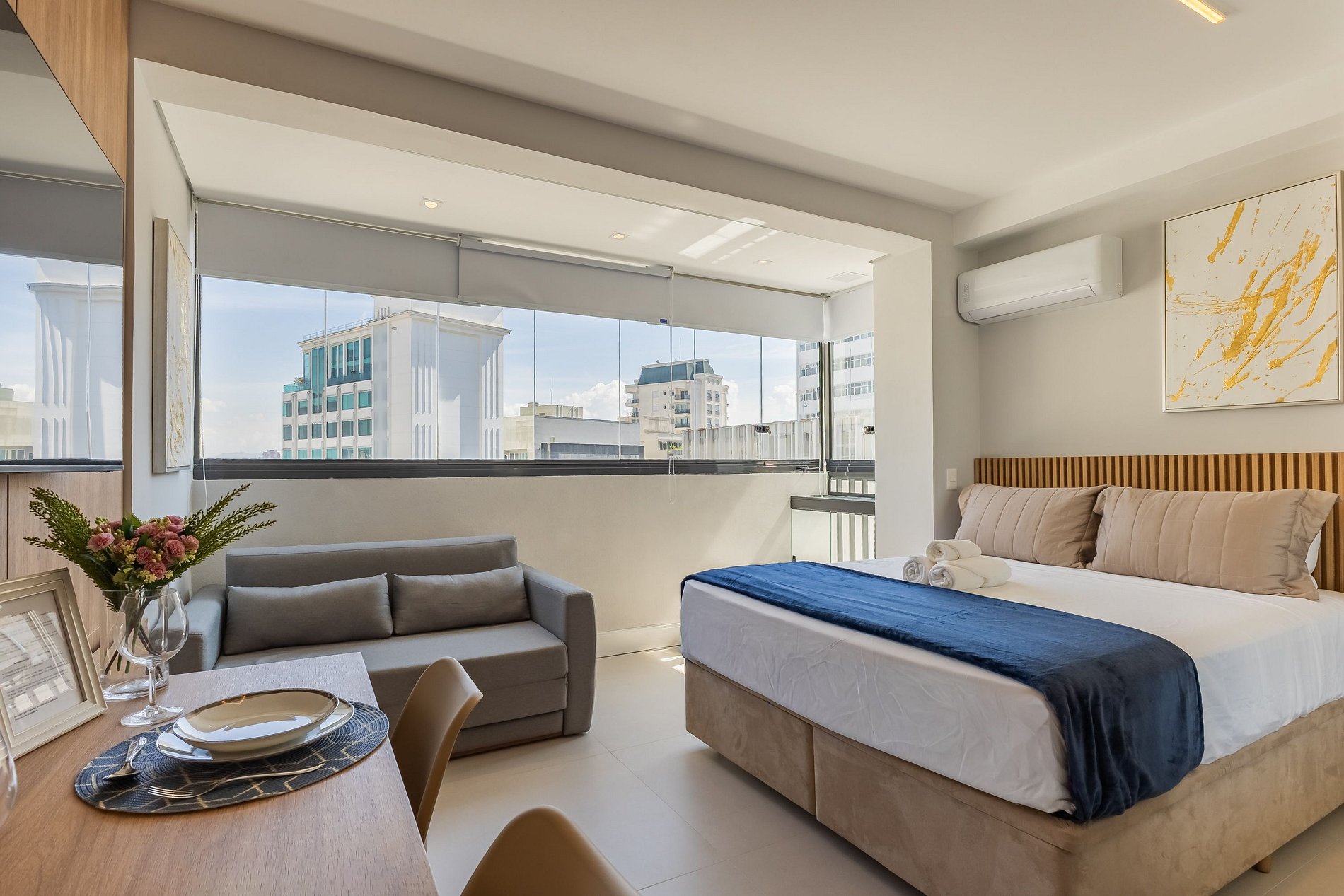Espaço funcional e bem distribuído, localizado no 11° andar, ideal para até 4 pessoas, perfeito para estadias a lazer ou trabalho. O espaço oferece conforto, praticidade e excelente mobilidade em uma das regiões mais centrais de São Paulo.