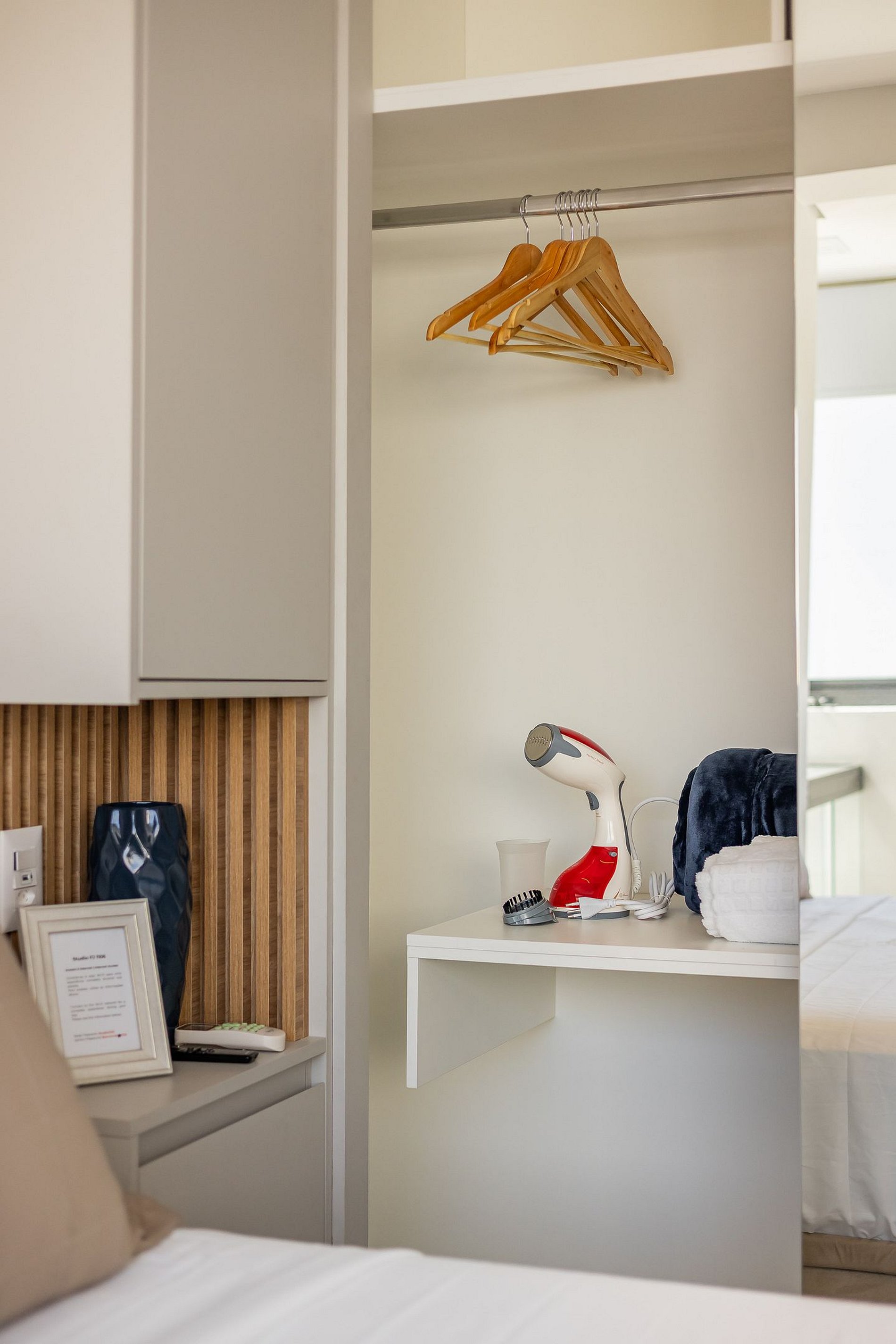 - Guarda-roupas, secador de cabelo e vaporizador de roupas