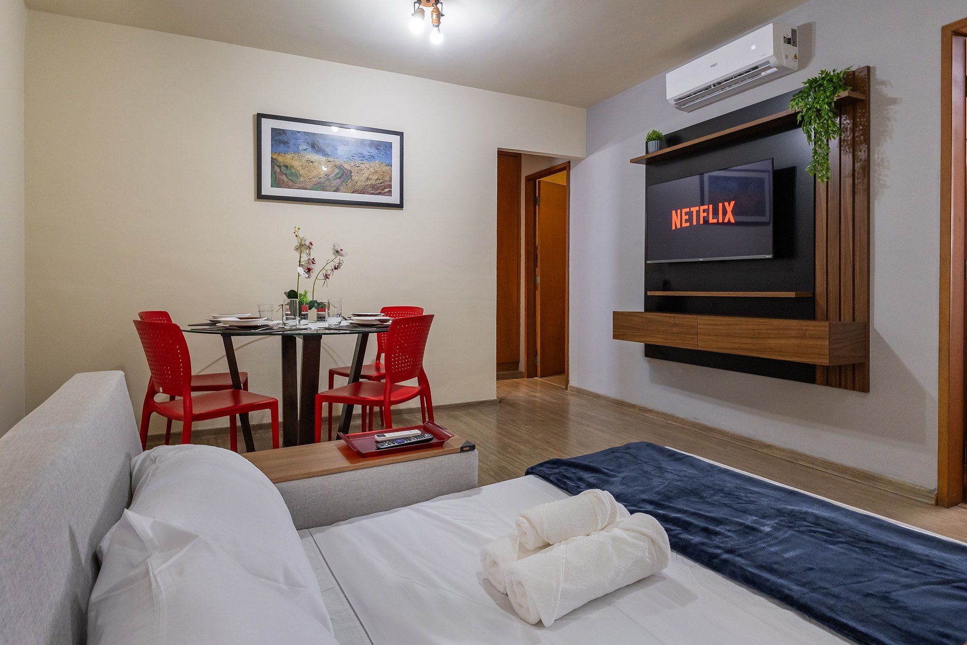 Apartamento funcional e bem distribuído no 11° andar, ideal para até 4 pessoas, perfeito para viagens a trabalho ou lazer. O imóvel oferece conforto, praticidade e excelente localização, a poucos passos do Aeroporto de Congonhas.