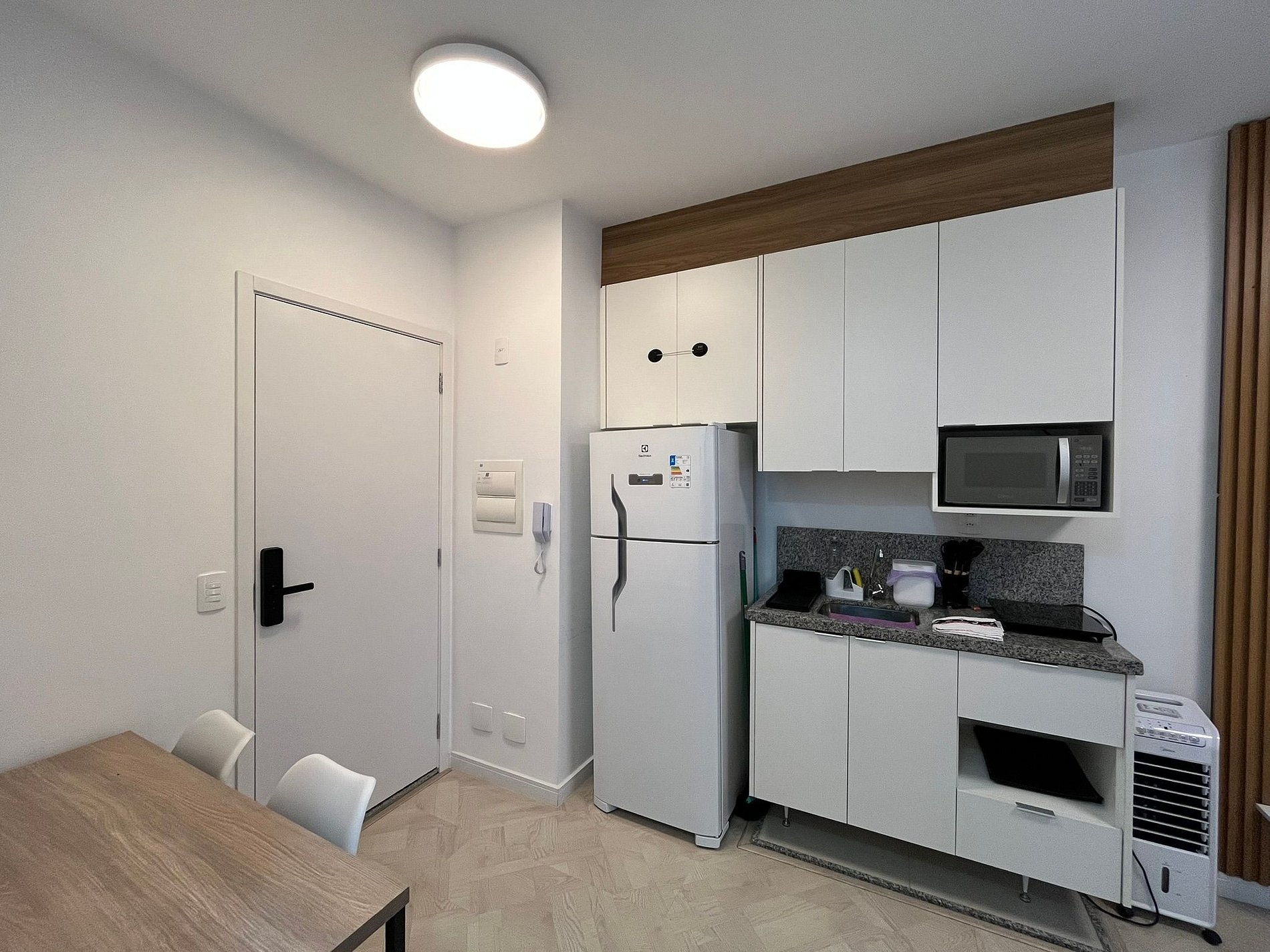 O condomínio oferece portaria 24h, academia, lavanderia, coworking e pet place, garantindo segurança e comodidade para sua estadia.