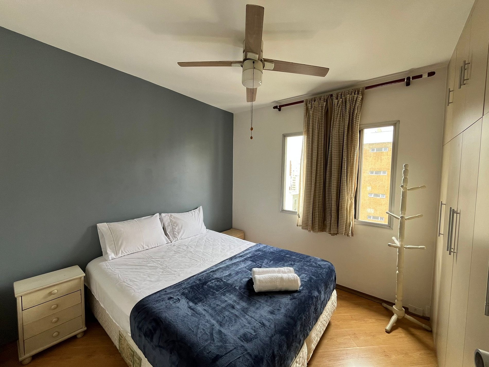 Espaço amplo de 46 m² em ótima localização em São Paulo. O apartamento é completo com Wi-Fi, Smart TV, sofá confortável e mesa de jantar, além de um quarto com cama queen e ventilador de teto. A cozinha é completa com micro-ondas, forno, liquidificador, sanduicheira e utencilíos de cozinha, perfeito para curtas ou longas estadias. O condomínio é completo e você terá acesso a piscina na cobertura, portaria 24h, mini mercado express dentro do prédio, serviço de arrumação diária, lavanderia no subsolo e uma vaga de garagem com manobrista.