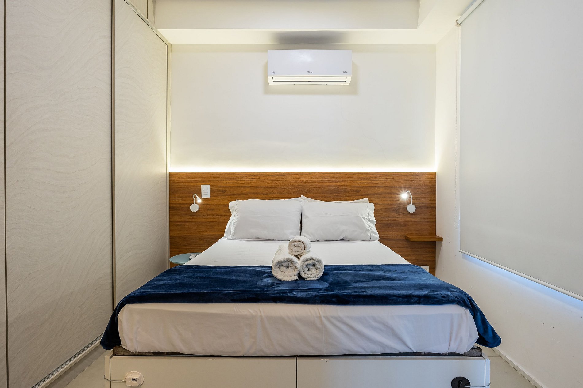 - Ar-condicionado, cortinas blackout, suíte e varanda