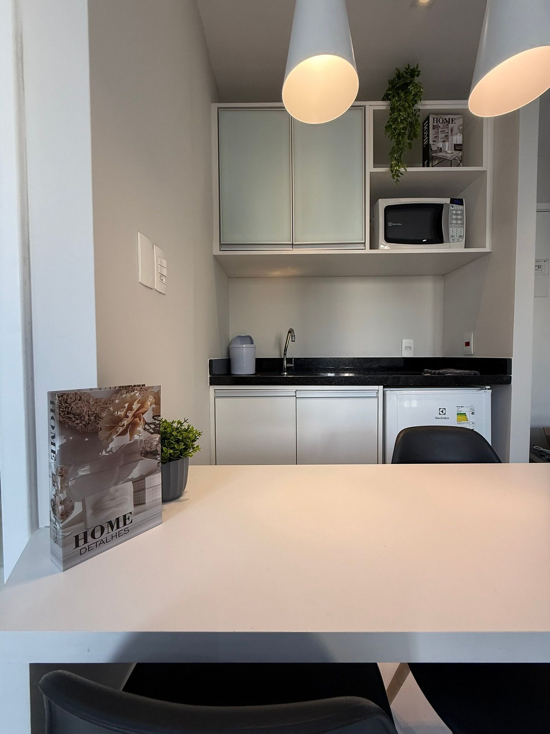 - Cozinha compacta com frigobar e micro-ondas