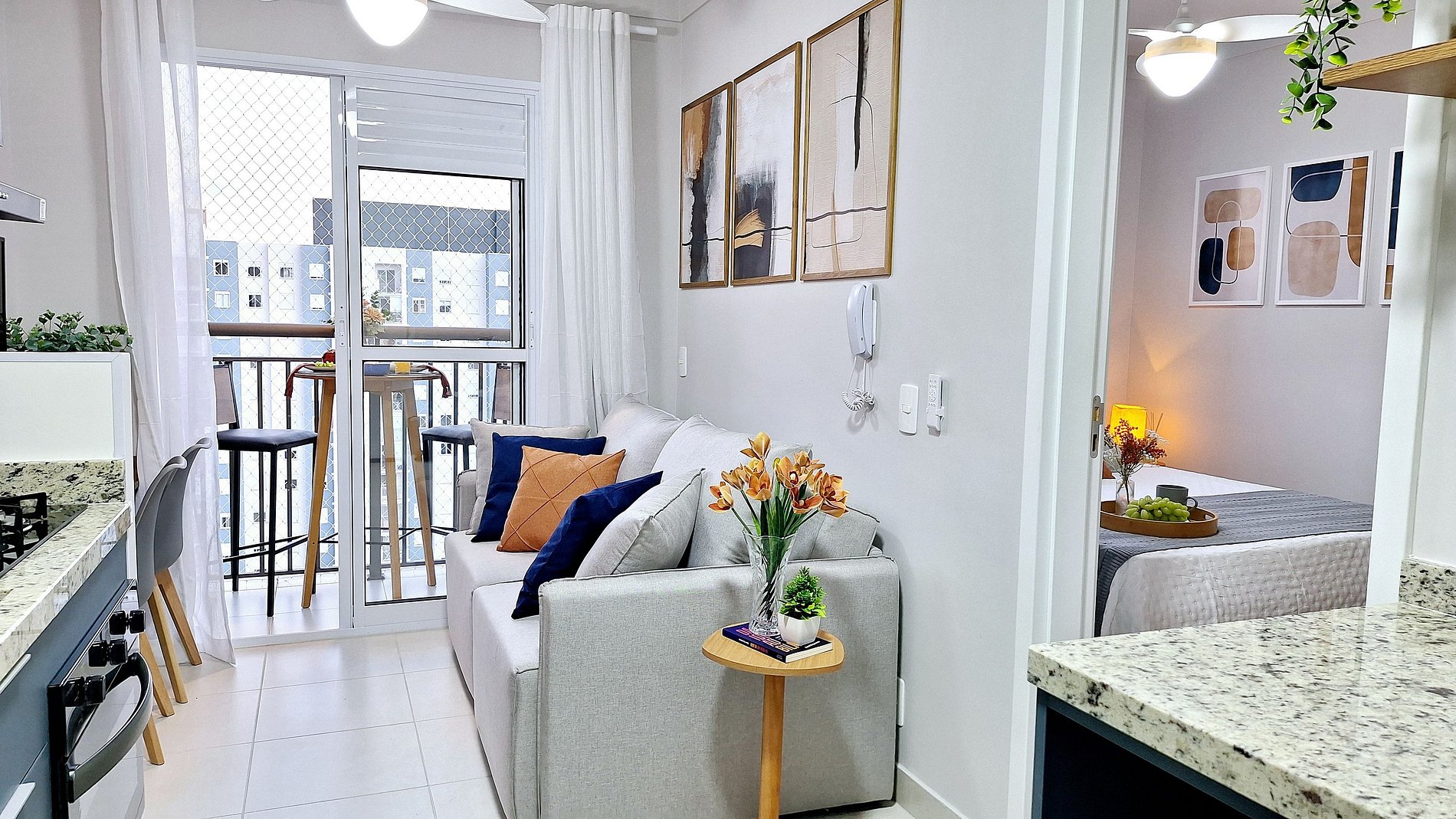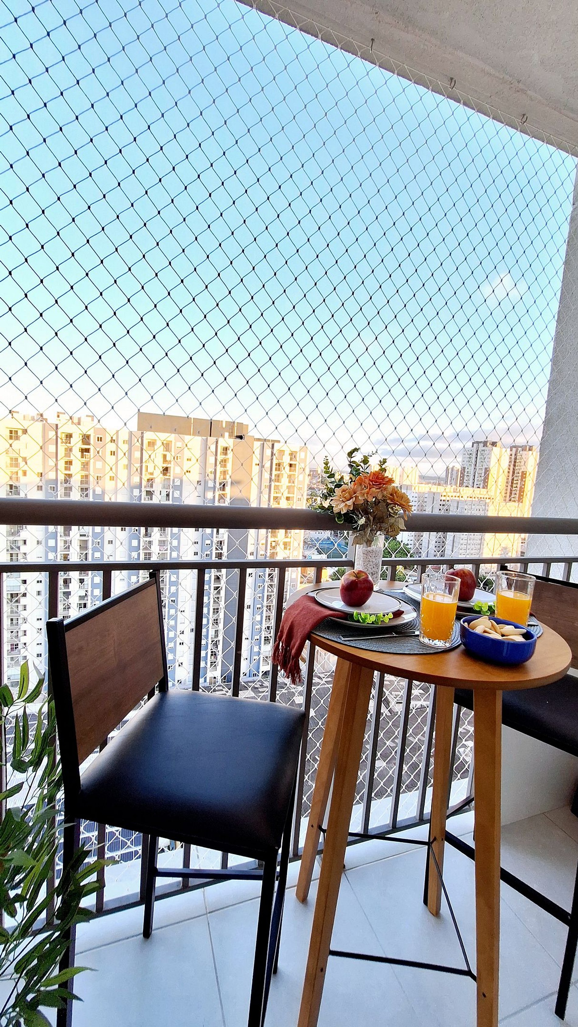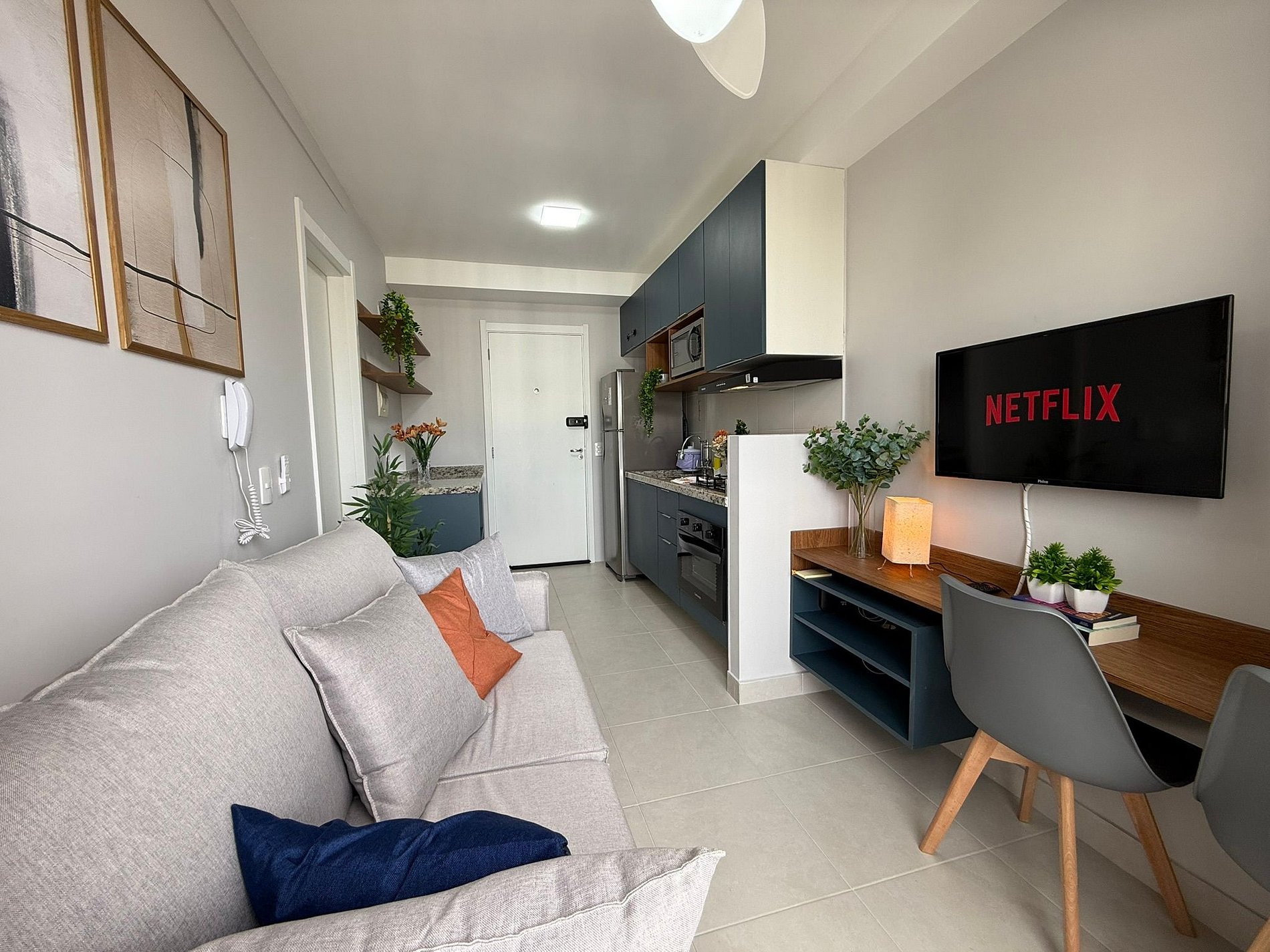 Hospede-se com comodidade: apto novo, internet 500Mb, varanda e excelente localização para eventos corporativos.