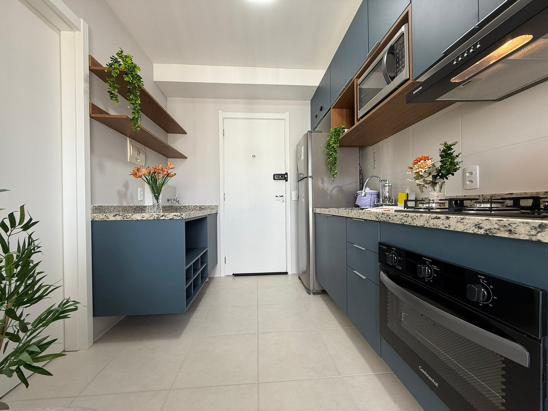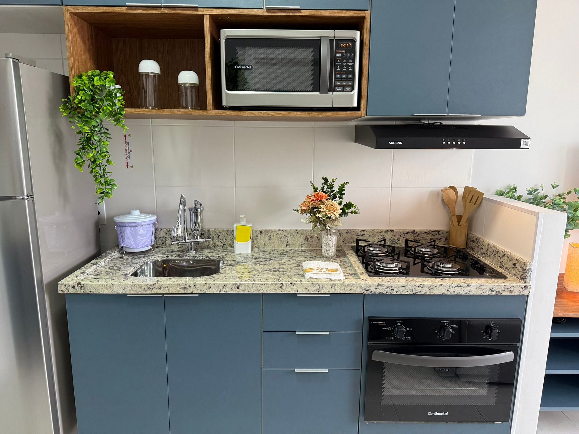 • Cozinha completa e funcional: cooktop, forno, micro-ondas e utensílios essenciais.