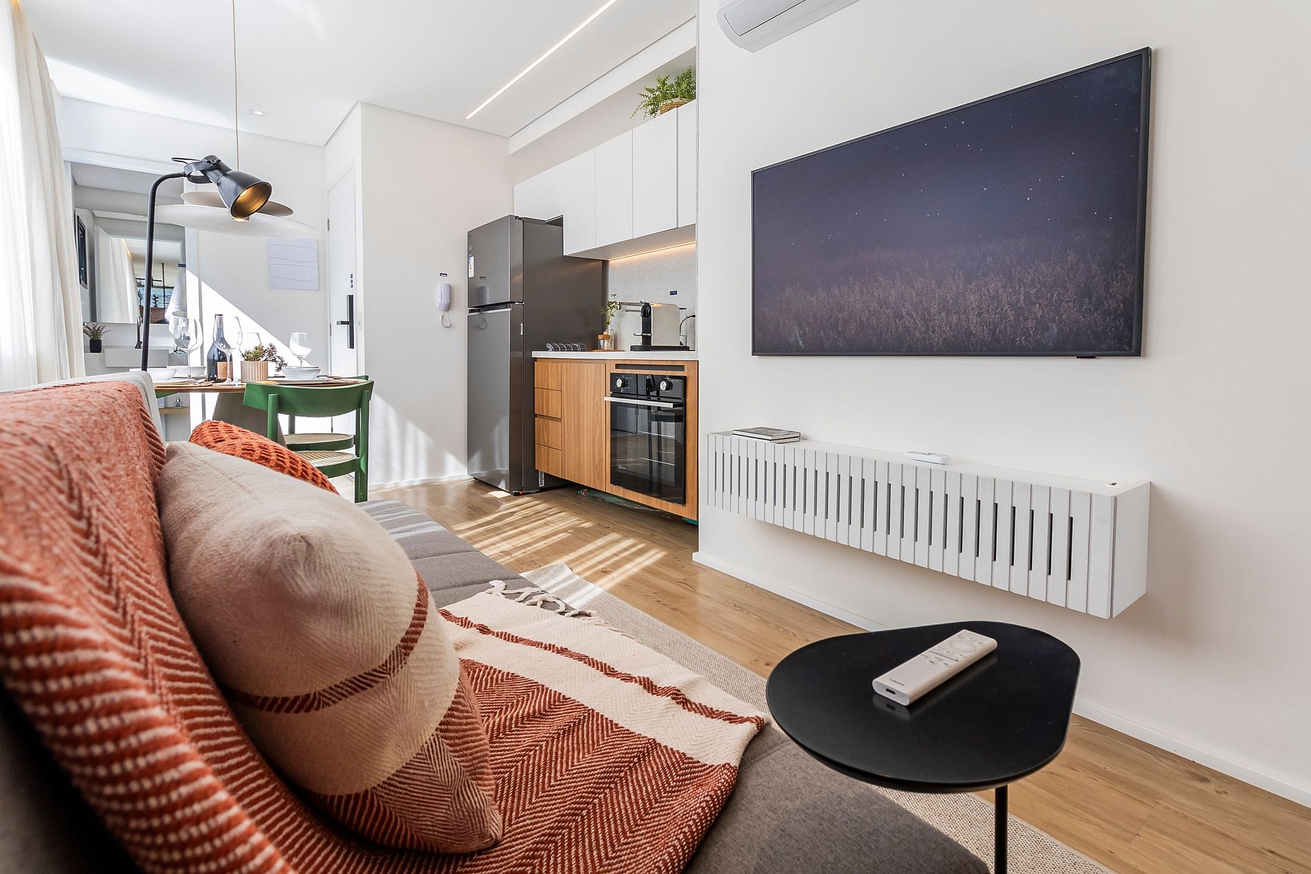 Venha conhecer esse espaço na Vila Madalena, um Studio todo decorado com armários planejados, cozinha completa, geladeira, forno, cafeteira, utensílios de cozinha, TV Smart, Internet Fibra, cama casal, sofá-cama e cortinas blackout. Além disso, o Studio conta com ar-condicionado e uma cozinha funcional e moderna.