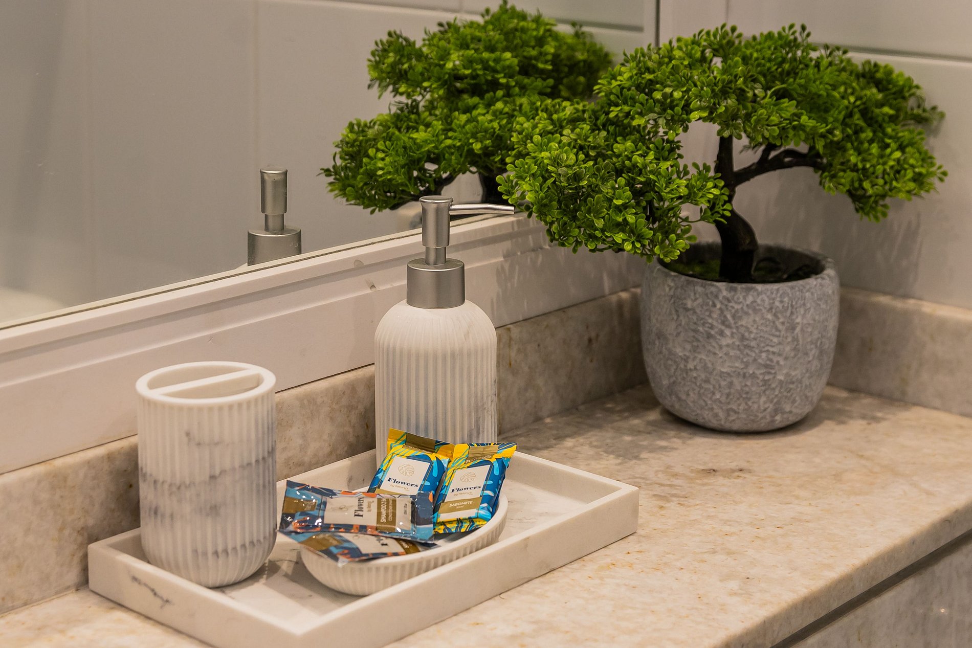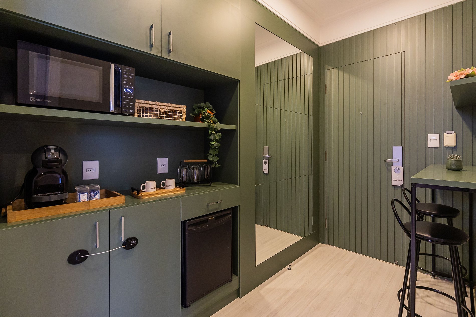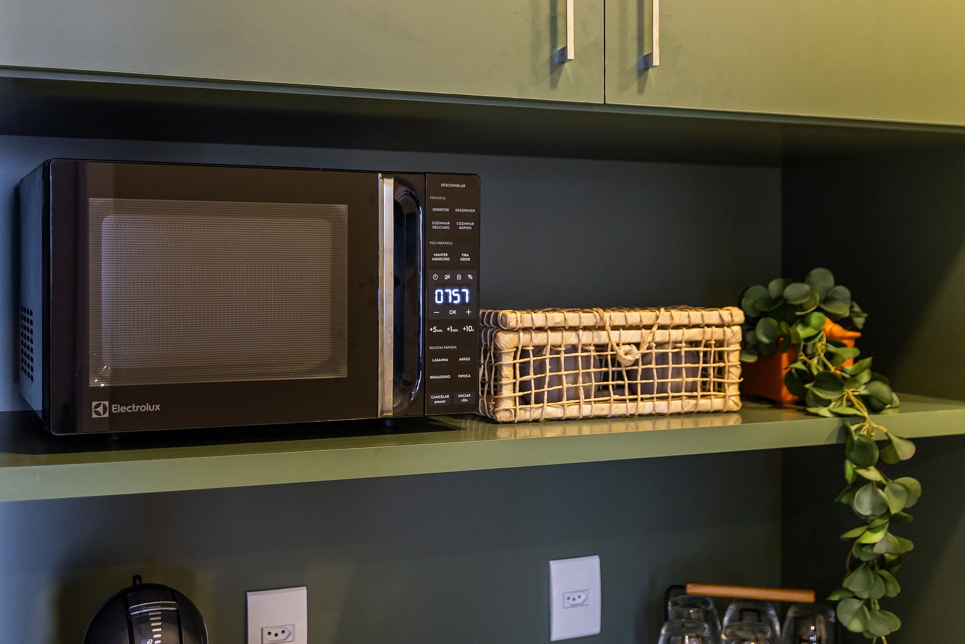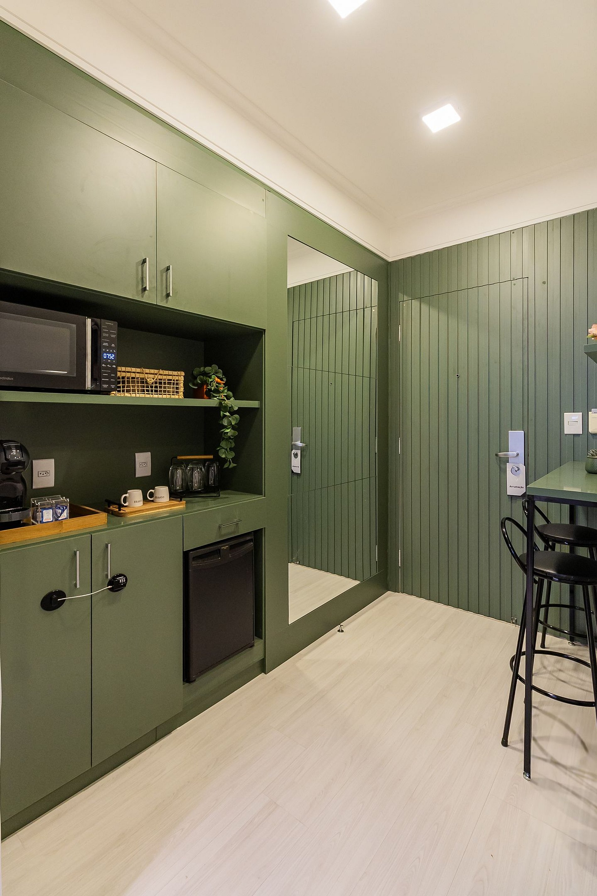 Nosso espaço totalmente novo e moderno comporta sua família em até 3 pessoas, com ar condicionado central em todo o apartamento, conta com 1 quarto espaçoso com TV a cabo e guarda-roupas. No quarto temos uma cama King, uma cama de solteiro e uma mesa para trabalho. O banheiro é completo com box de vidro, secador de cabelo, vaporizador para passar suas roupas. A cozinha é compacta, com móveis planejados, microondas, máquina de café, frigobrar e utensílios