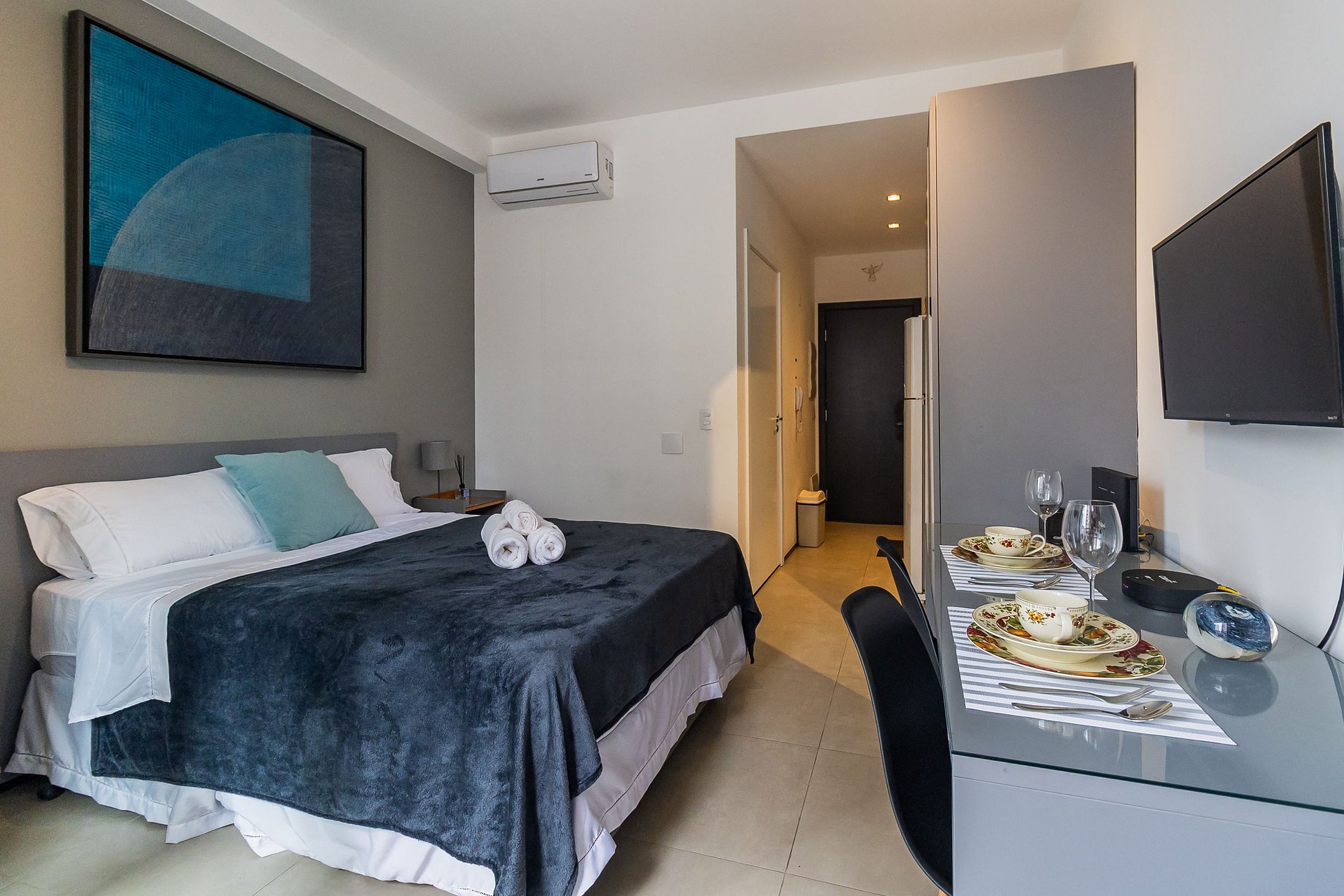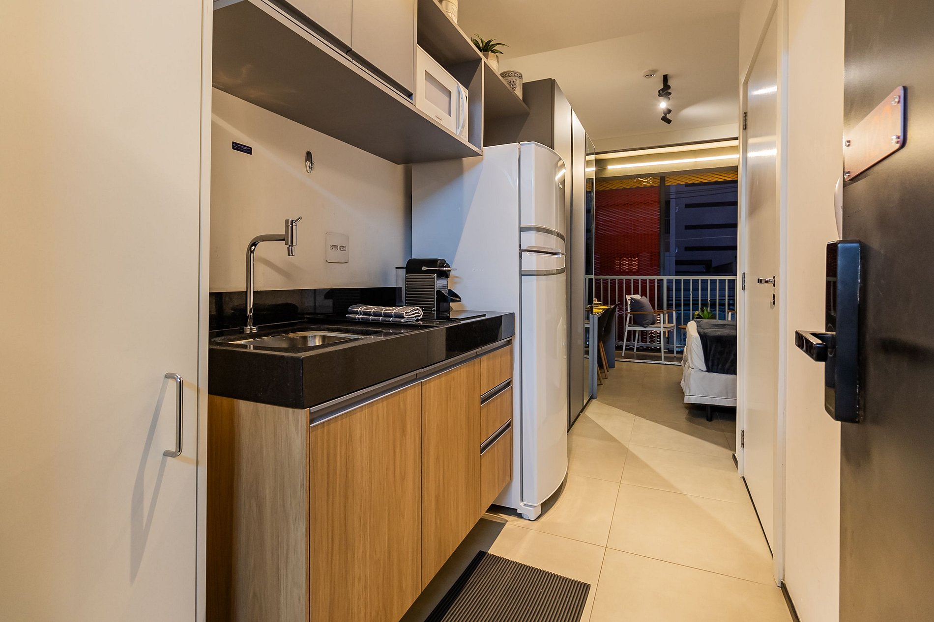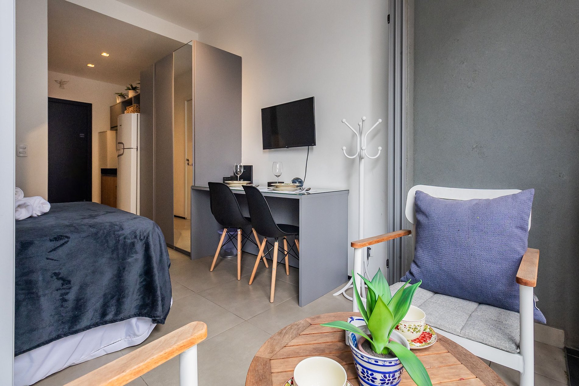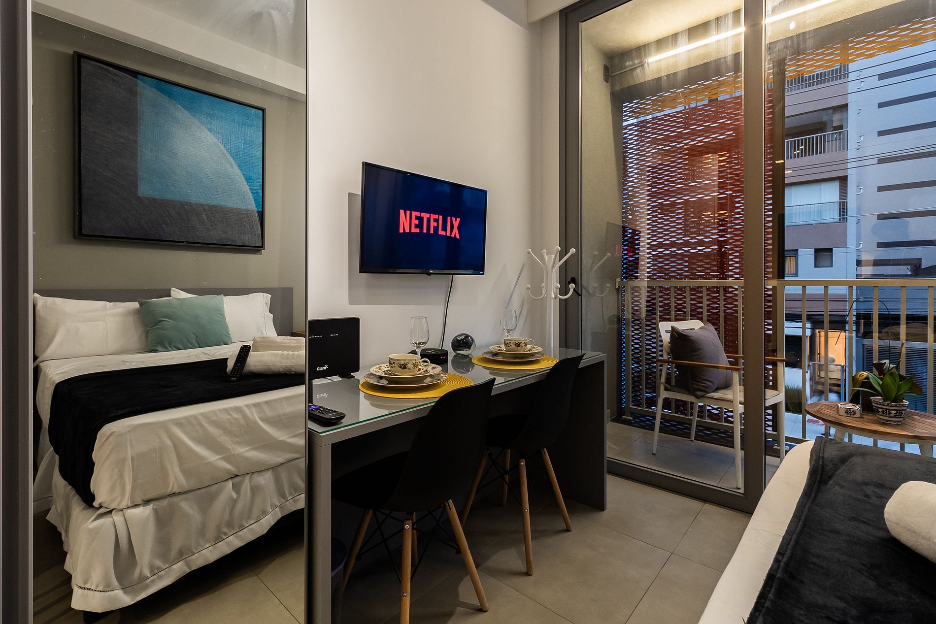 Studio moderno em Moema, a 300m do metrô Eucaliptos e do Shopping Ibirapuera. Equipado com Wi-Fi de 300Mb, ar-condicionado, cortinas blackout, SmartTV, cozinha completa e varanda charmosa. Ideal para trabalho ou lazer, com mesa de escritório, cafeteira Nespresso e muito conforto. Condomínio com academia, coworking, lavanderia OMO e portaria 24h. Prático, funcional e super bem localizado!